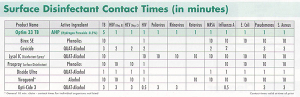 Check out the table below which compares the contact times of some of the leading surface disinfectants.
